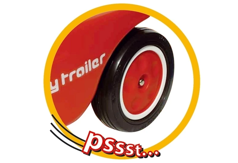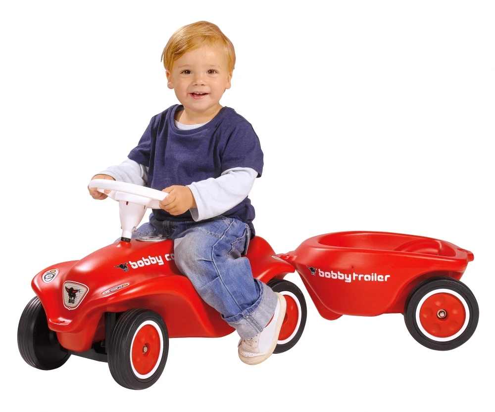 De nieuwe trailer voor de New-Bobby-Car met standaard fluisterwielen.