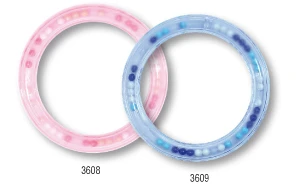 De klassieke rammelaar ring voor baby’s gemaakt van hoge kwaliteit doorzichtige kunststof in roze en lichtblauw. Het geluid van de 27 balletjes geeft een aangenaame ratelend geluid. Het veranderende patroon op de binnenkant van de ring en de drie verschillende kleuren balletjes geven een visueel effect. Vaatwasmachinebestendig en robuust materiaal zonder schadelijke stoffen.