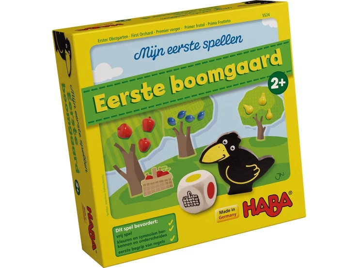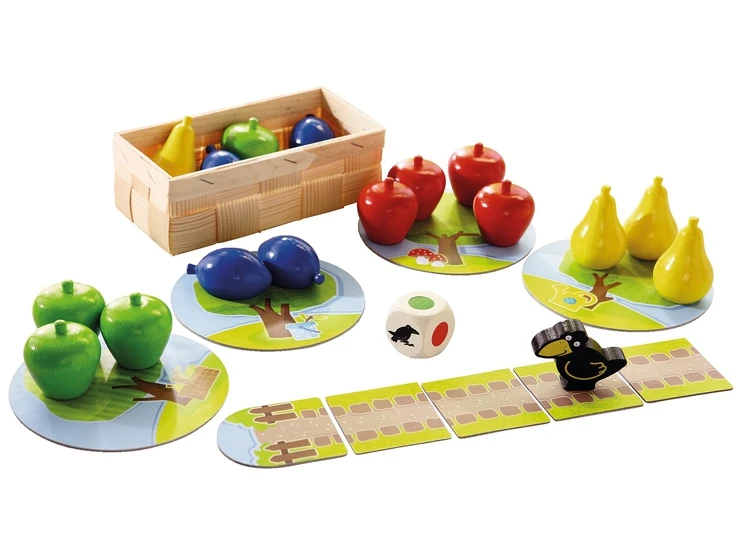 De spelklassieker „Boomgaard“ voor de allerkleinsten: de regels zijn aan de leeftijd aangepast en het spelmateriaal is speciaal voor kleine kinderhanden gemaakt. De mooie, handzame houten stukken nodigen tot vrij spelen uit en stimuleren hierbij de motorische vaardigheden.