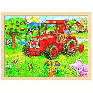 Houten legpuzzel met het thema “Traktor”. De afbeelding is opgebouwd uit 96 stukjes.