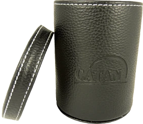 Het in relief gedrukte logo van Catan geeft deze prachtige zwarte dobbelbeker een chique uitstraling.