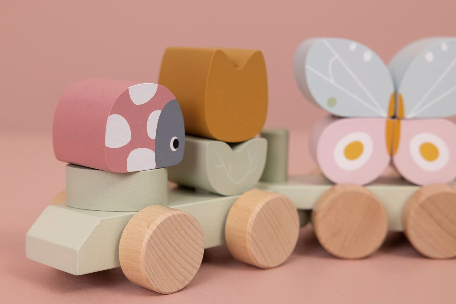 Little Dutch LD7067 Houten Blokkentrein Flowers and Butterflies