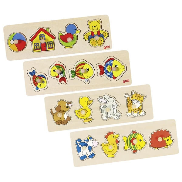 Houten noppenpuzzel met 4 stukjes.