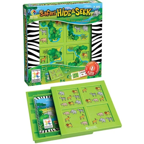 Leg de 4 puzzelstukken op het spelbord, zodat er van elke soort evenveel dieren zichtbaar blijven als er op de opdracht staan. Logisch denkspel voor jong én oud met 48 opdrachten van heel makkelijk tot razend moeilijk.