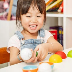 5, 6, 7, 8, 9, 10… Wie niet weg is, is gezien! Vind jij de verstopplaats van deze grappige ballen? Probeer de magnetische onderdelen te stapelen of speel verstoppertje met de gekke-bekken-ballen. Ontdek kleuren en vormen. Een leuke set om fijne motoriek en hand-oog coördinatie te oefenen.