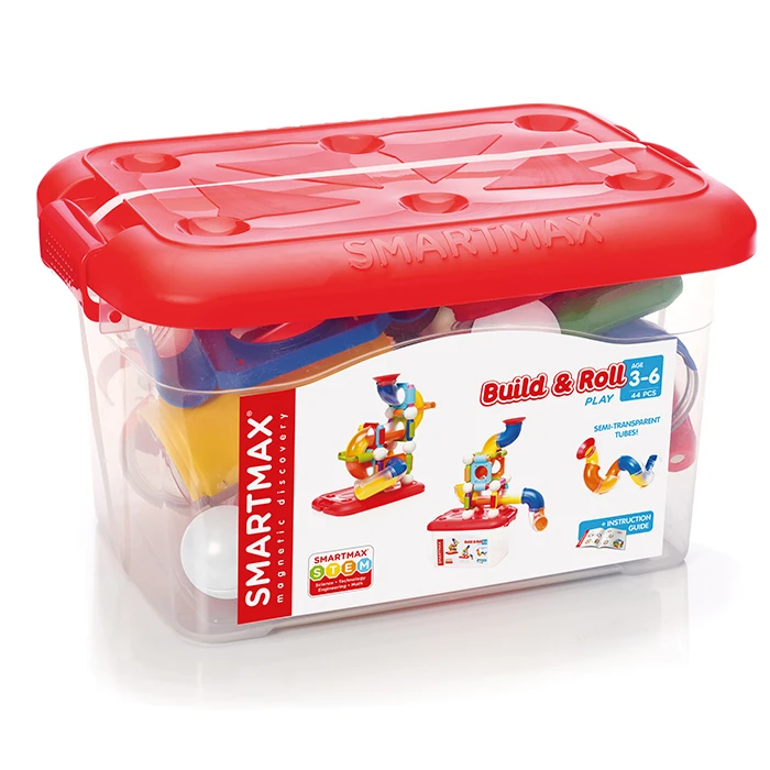 De SmartMax Build & Roll-set stimuleert kinderen om hun visueel-ruimtelijke vaardigheden te ontwikkelen door hun eigen constructies en ballenbanen te bouwen met behulp van de leuke, semi-transparante buizen.